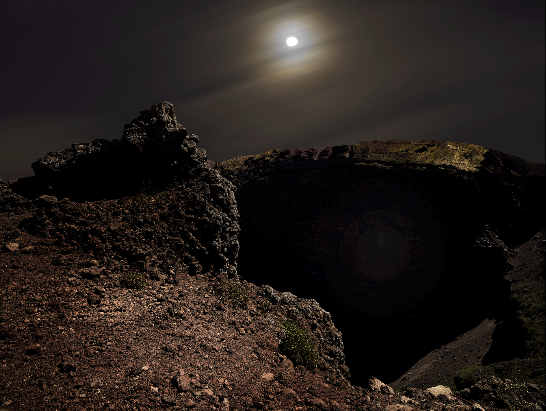 Ma questa volta i luoghi sono fotografati in una luce particolare, quando, cessati gli ultimi bagliori del sole al tramonto, la notte e la luna prendono il dominio sul mondo. Né si tratta di una scelta casuale poiché per l’autore non bisogna essere nati in questi luoghi per sapere che sull’instabile terra sismica non è concesso “poggiare i piedi a terra”: